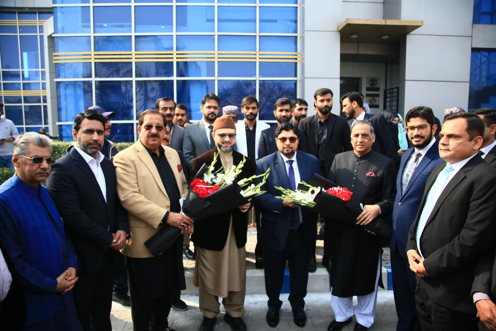Minhaj University Lahore proudly hosted Founder’s Day 2026, beginning with a dignified and heartfelt welcome to the esteemed leadership. Prof. Dr. Sajid Mehmood Shahzad, Vice Chancellor, MUL, along with Prof. Dr. Khurram Shahzad, Registrar, MUL, Khurram Nawaz Gandapur, Nazm-e-Aala, Minhaj-ul-Quran International, and senior officials, warmly received Prof. Dr. Hussain Mohi-ud-Din Qadri, Deputy Chairman, Board of Governors, MUL, and Prof. Dr. Hassan Mohiuddin Qadri, Chairman Supreme Council, MQI. The celebration honored the blessed birthday of Shaykh-ul-Islam Prof. Dr. Muhammad Tahir-ul-Qadri and reflected unity, respect, and a shared commitment to the vision and mission of our Founder.
